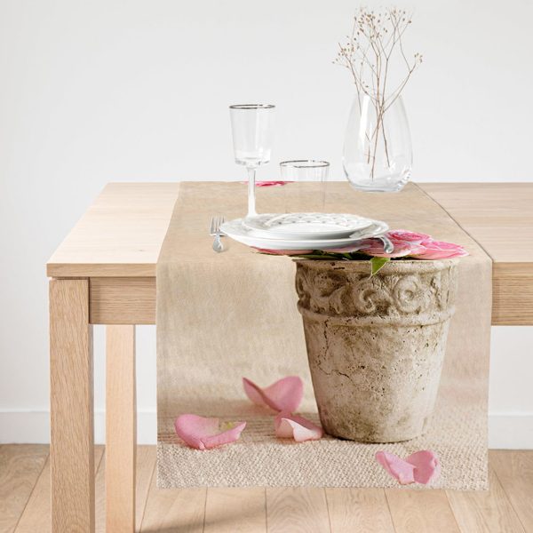 Realhomes Pastel Zemin Üzerinde Vazo Desenli Dijital Baskılı Özel Tasarım Süet Runner