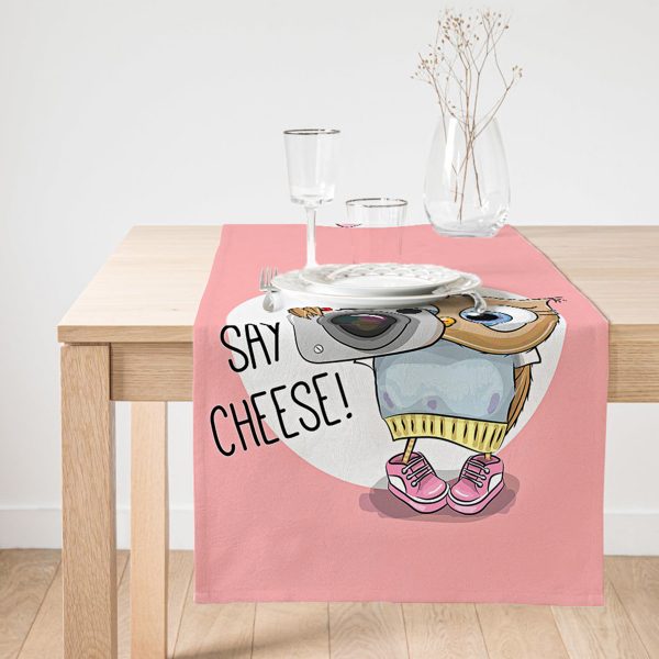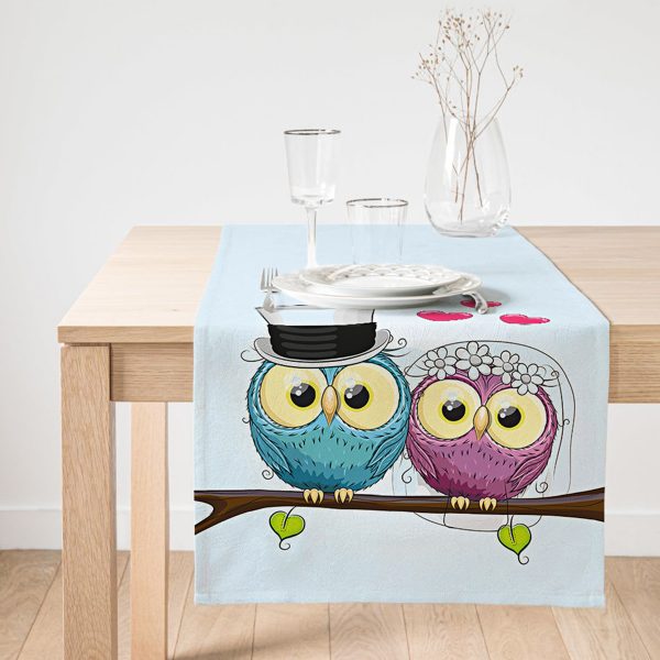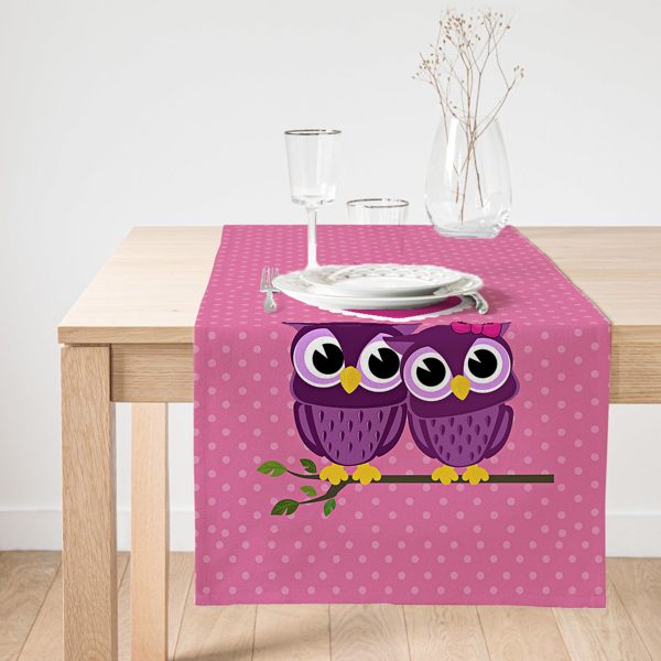 Realhomes Baykuş Desenli Dijital Baskılı Dekoratif Özel Tasarım Süet Runner