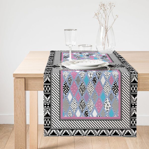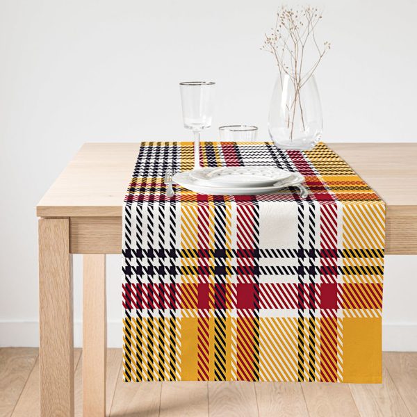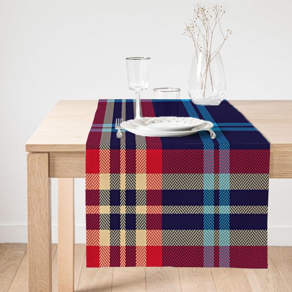 Realhomes Modern Tasarımlı Ekose Geometrik Dijital Baskılı Süet Runner