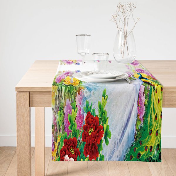 Realhomes Modern Tavus Kuşu Tasarımlı Dijital Baskılı Süet Runner
