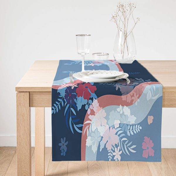 Realhomes Mavi Modern Sanat Tasarımlı Dijital Baskılı Süet Runner