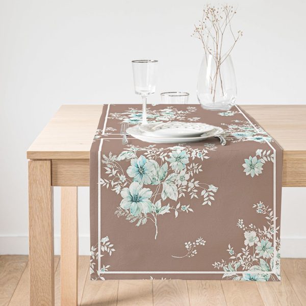 Realhomes Kahverengi Ve Çiçeklerin Uyumu Özel Tasarım Dijital Baskılı Süet Runner
