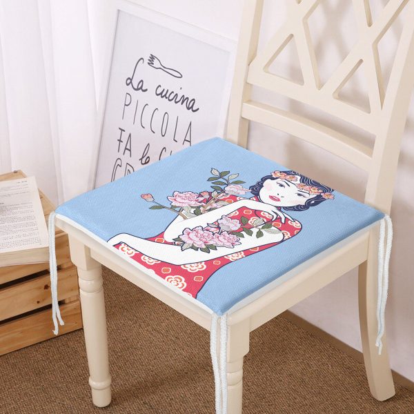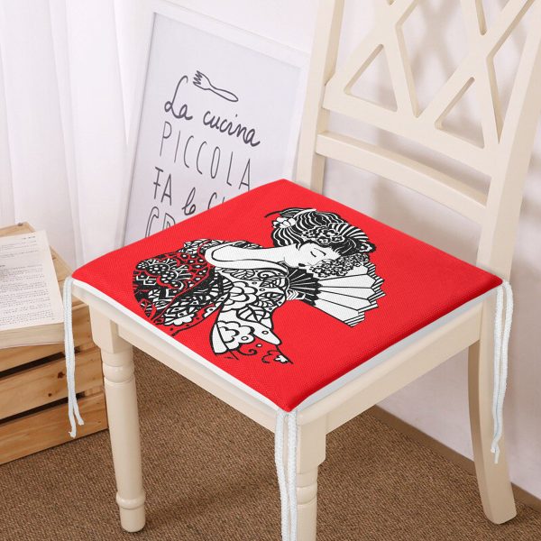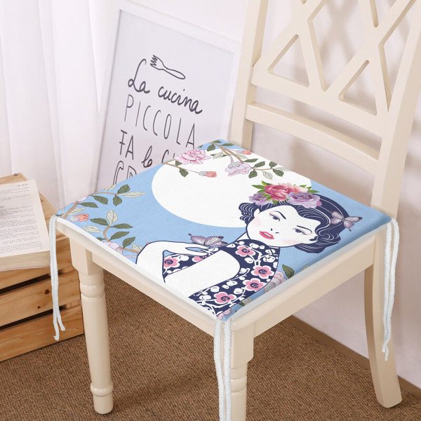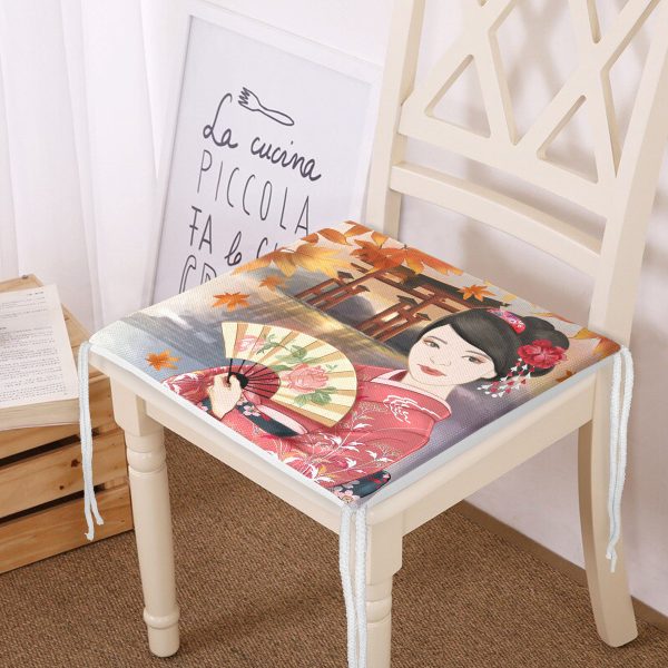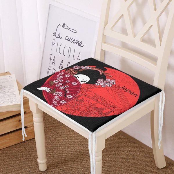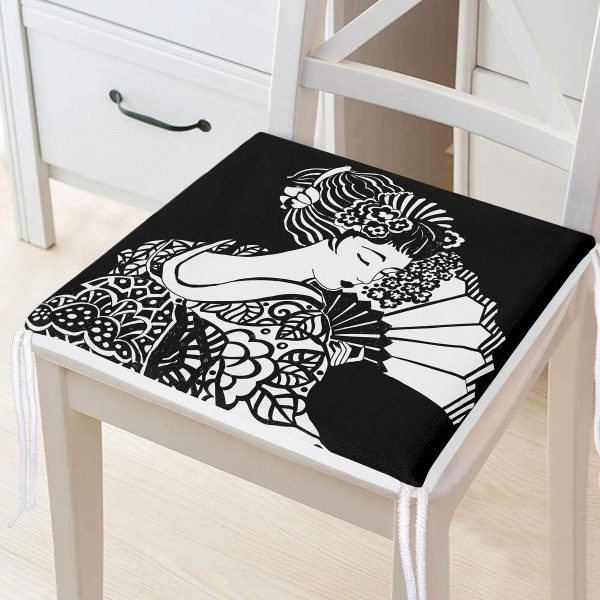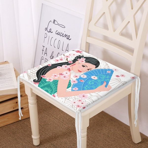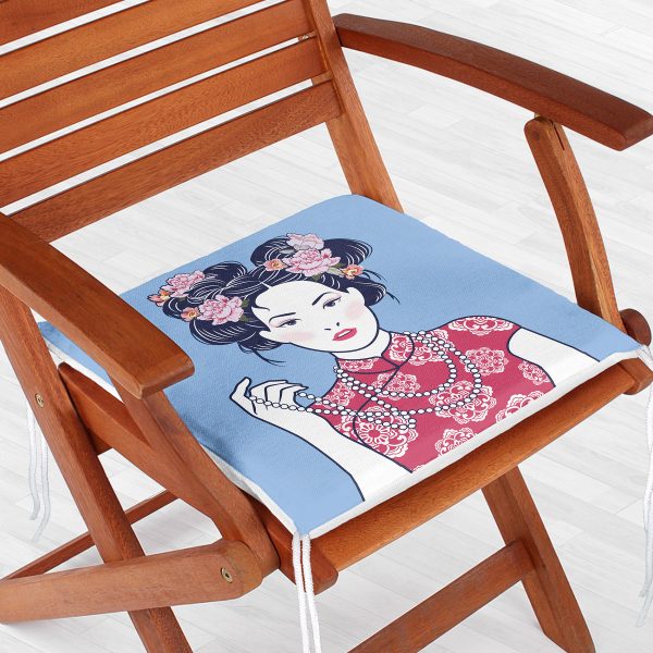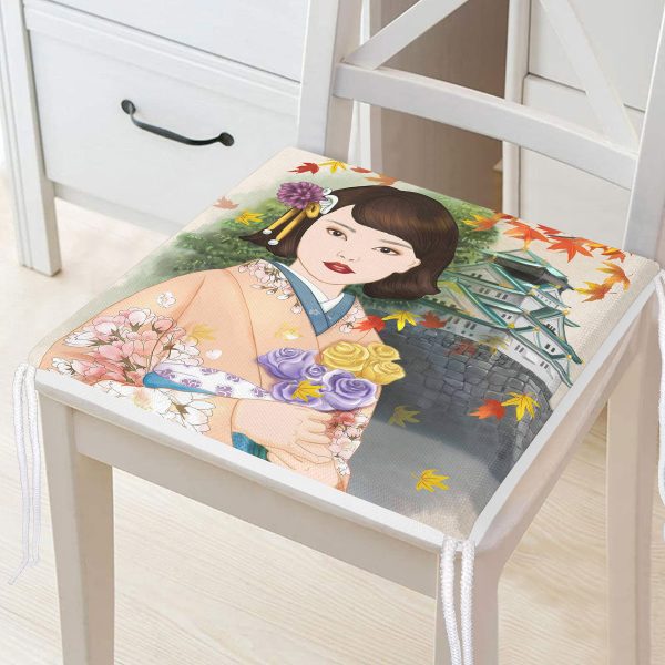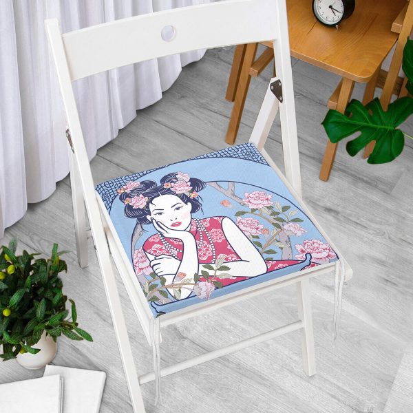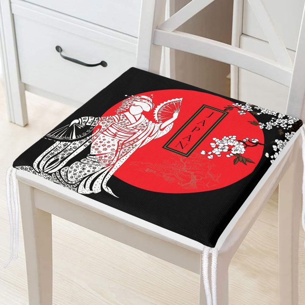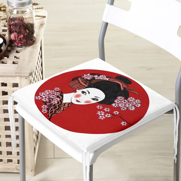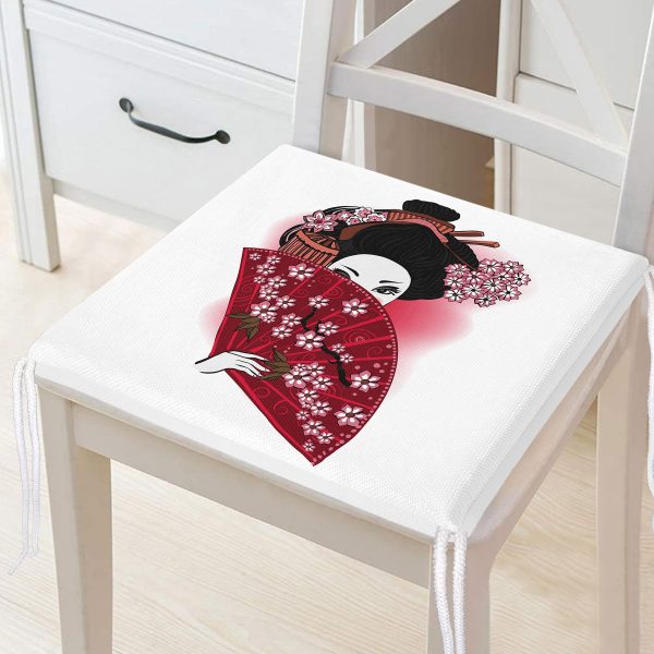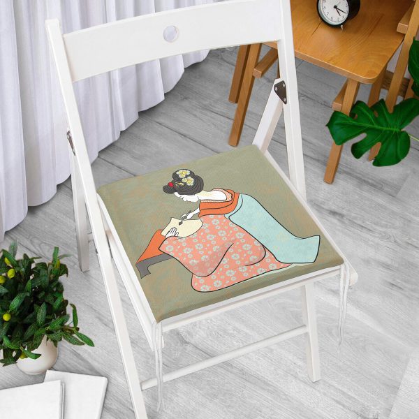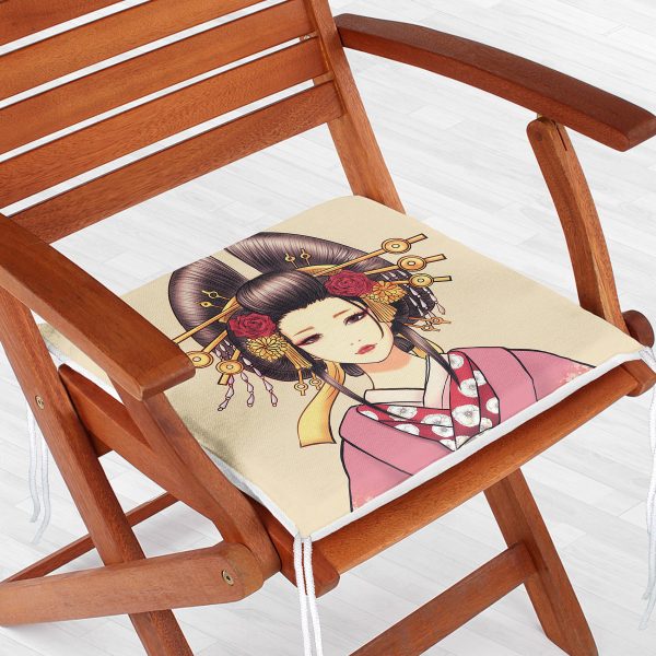 Masum Baskan Japon Kız Motifli Modern Fermuarlı Sandalye Minderi