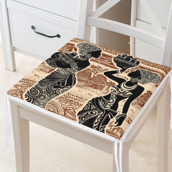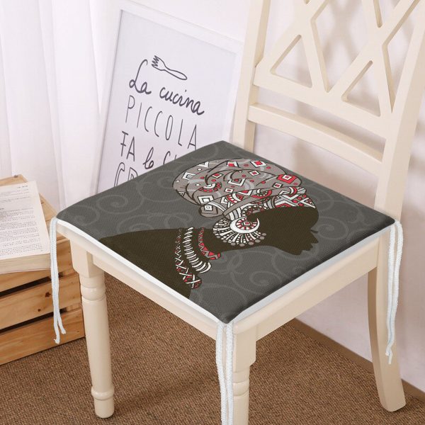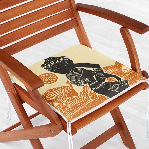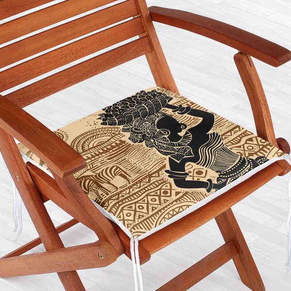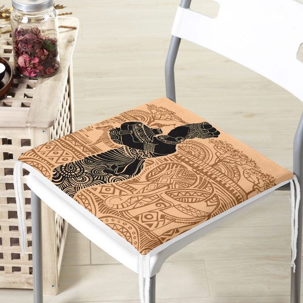 Etnik Desen Zeminli Afrika Kadın Motifli Dekoratif Fermuarlı Sandalye Minderi