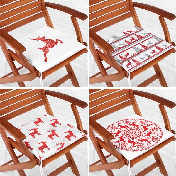 4’lü Kırmızı Beyaz Yılbaşı Geyikleri Fermuarlı Sandalye Minderi Seti