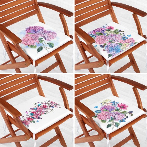 4’lü Renkli Zemin Üzerinde Ortanca Çiçeği Desenli Modern Fermuarlı Sandalye Minderi Seti