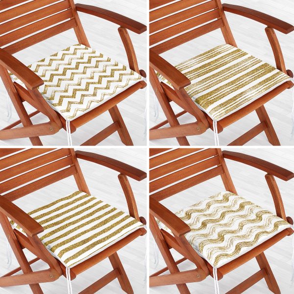 4’lü Renkli Zemin Üzerinde Gold Detaylı Modern Fermuarlı Sandalye Minderi Seti