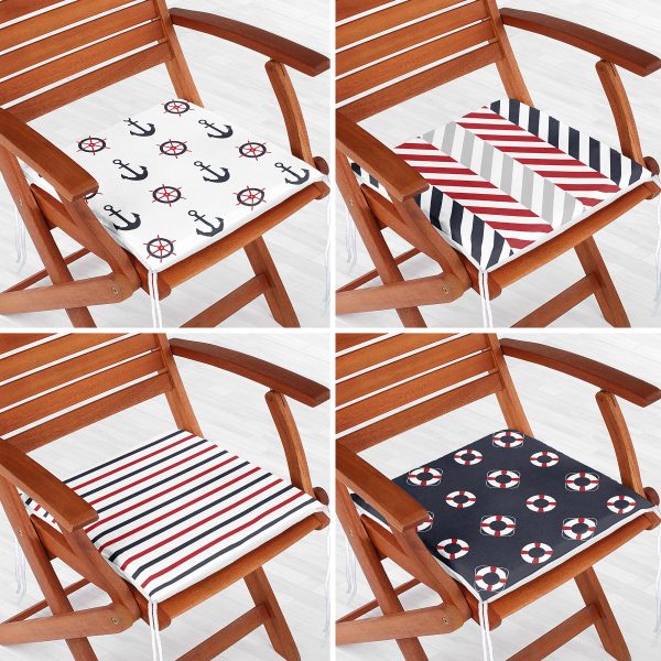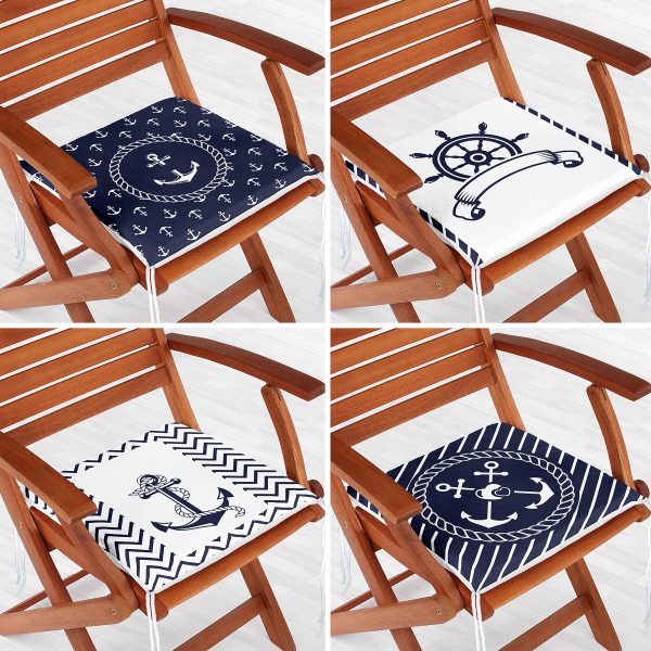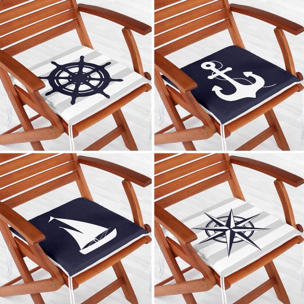 4’lü Renkli Zemin Üzerinde Denizci Desenli Modern Fermuarlı Sandalye Minderi Seti