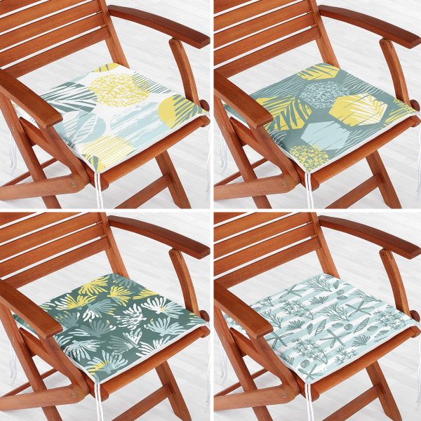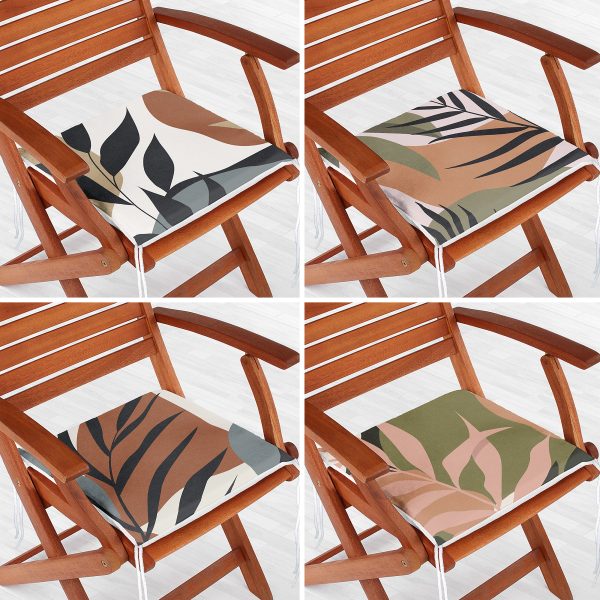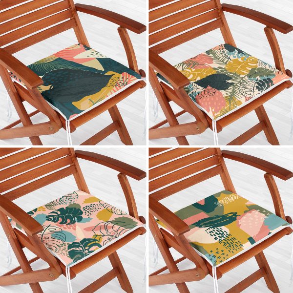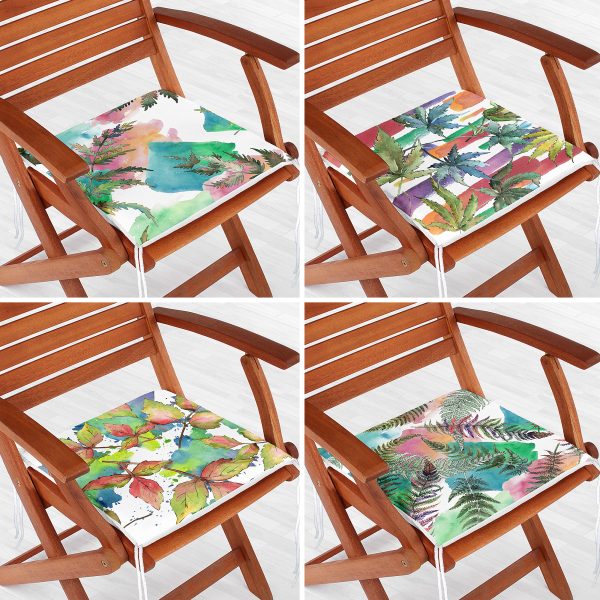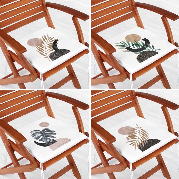 4’lü Renkli Zemin Üzerinde Yaprak Desenli Modern Fermuarlı Sandalye Minderi Seti