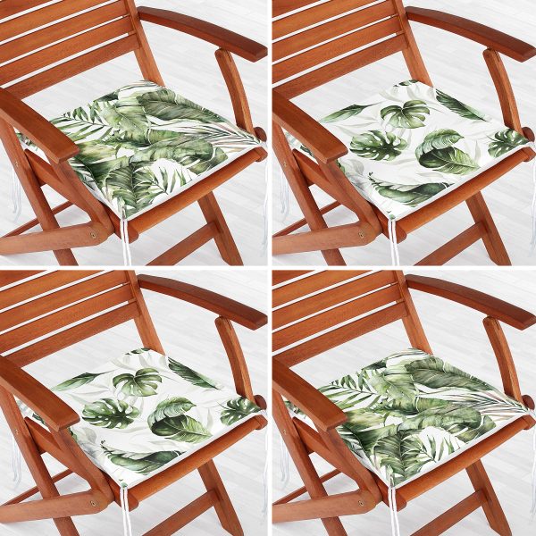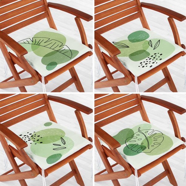4’lü Yeşil Egzotik Yaprak Tasarımlı Dijital Baskılı Modern Fermuarlı Sandalye Minderi Seti