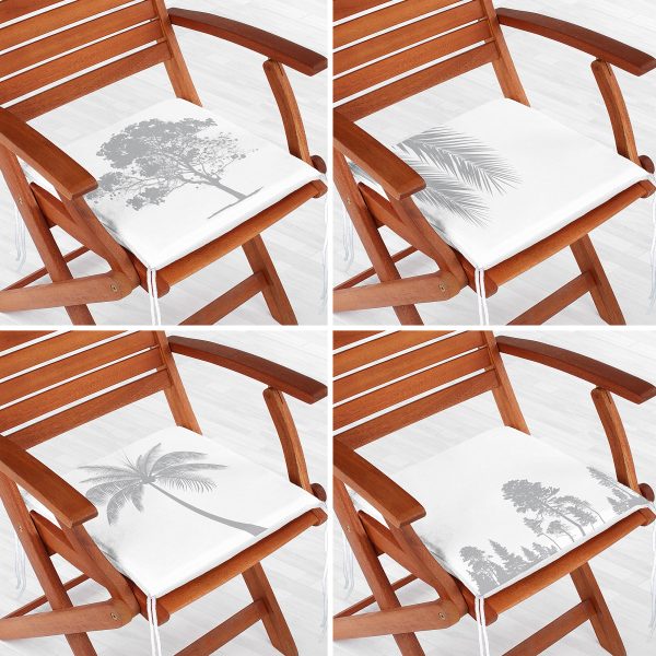 4’lü Beyaz Zeminde Gri Palmiye Ağaç Tasarımlı Modern Fermuarlı Sandalye Minderi Seti