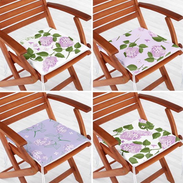 4’lü Ortanca Çiçeği Motifli Modern Fermuarlı Sandalye Minderi Seti