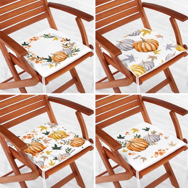 4’lü Kabak Desen Dijital Baskılı Modern Fermuarlı Sandalye Minderi Seti