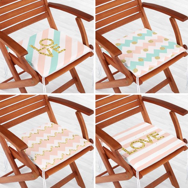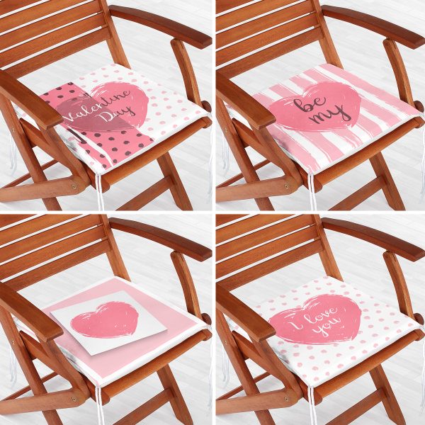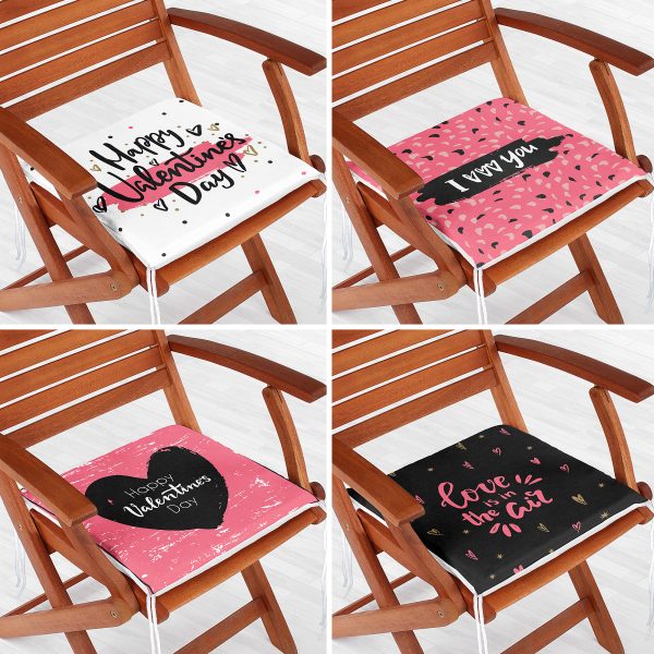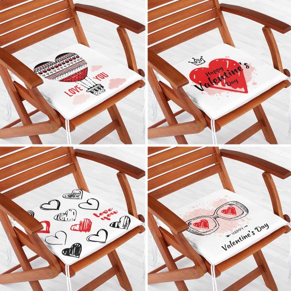 4’lü Sevgililer Günü Konseptli Özel Tasarım Modern Kombin Fermuarlı Sandalye Minderi Seti