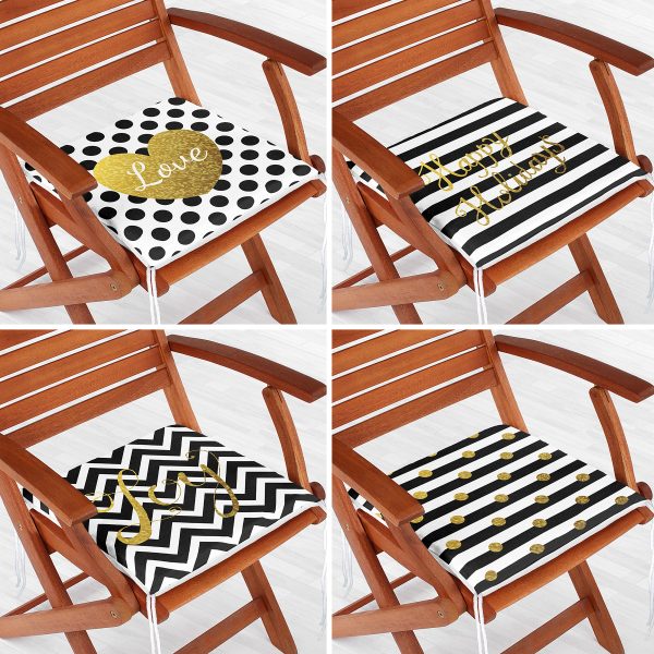 4’lü Siyah Beyaz Altın Varaklı Motifler Dijital Baskılı Fermuarlı Sandalye Minderi Seti