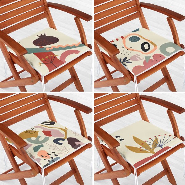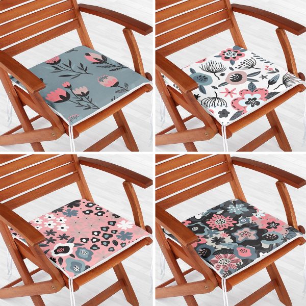 4’lü Çiçek & Şeker Tasarımlı Dijital Baskılı Modern Fermuarlı Sandalye Minderi Seti