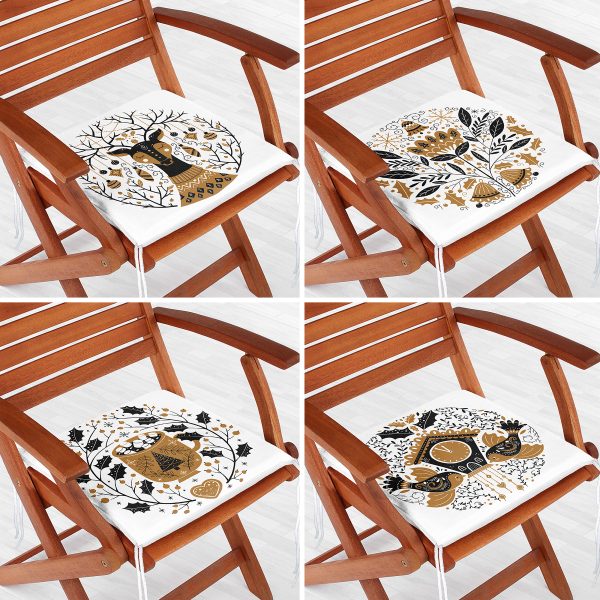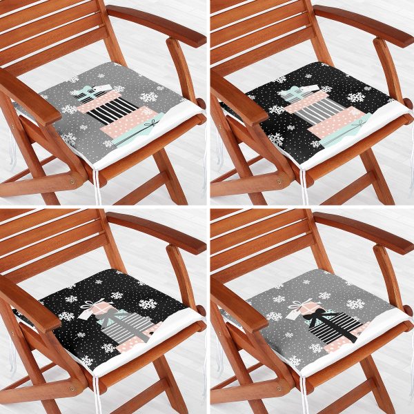 4’lü Siyah & Gri Hediye Paketleri Yılbaşı Temalı Dijital Baskılı Modern Fermuarlı Sandalye Minderi Seti