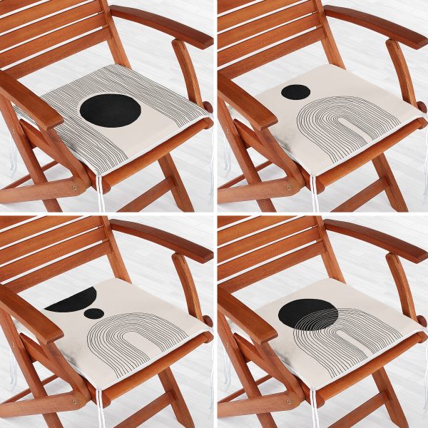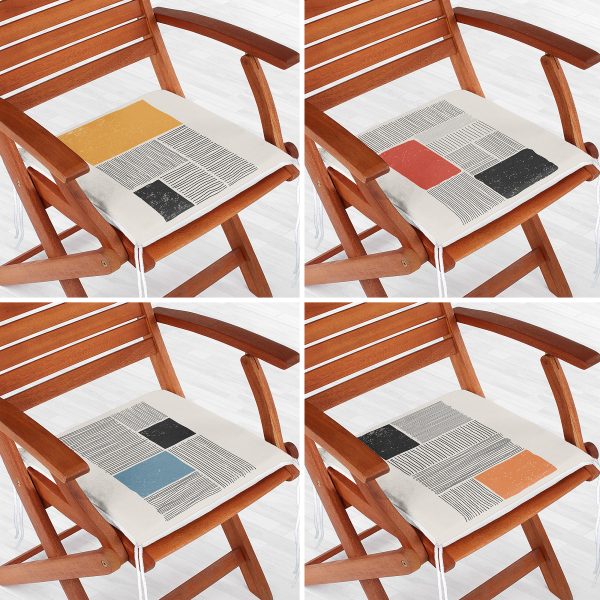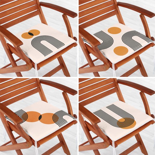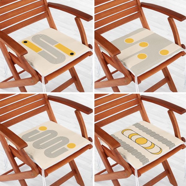 4’lü Geometrik Çizimli Soyut Tasarımlı Dijital Baskılı Modern Fermuarlı Sandalye Minderi Seti