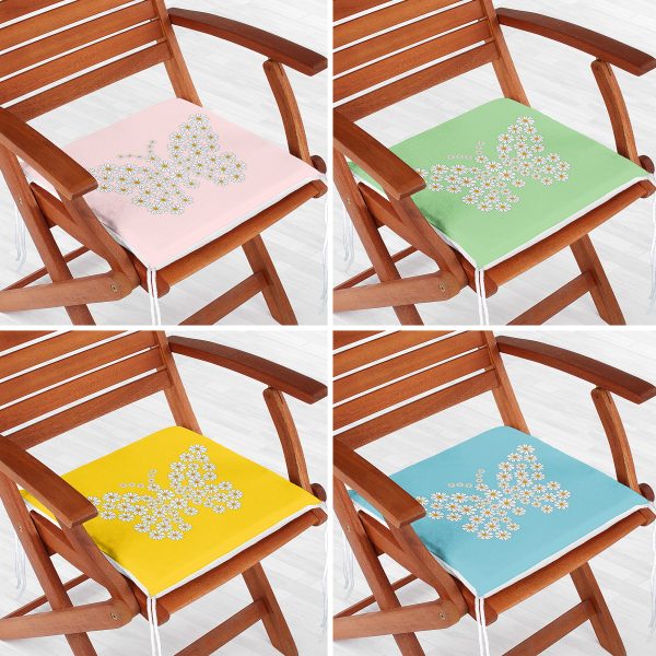 4’lü Renkli Zemin Papatya Kelebek Özel Tasarımlı Dijital Baskılı Modern Fermuarlı Sandalye Minderi Seti