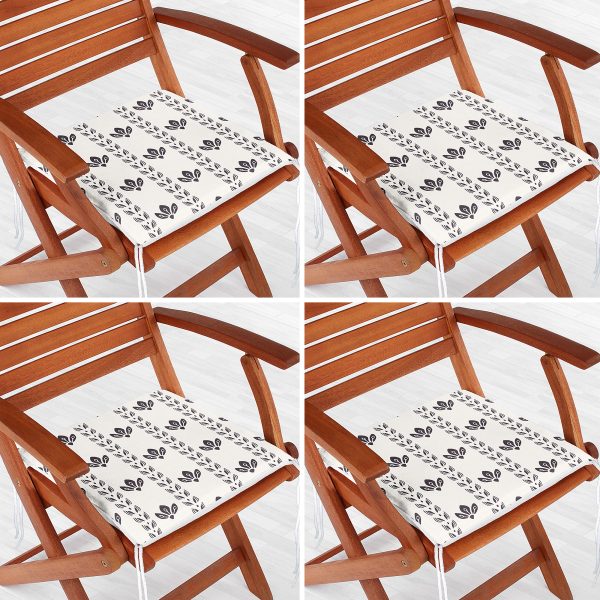 4’lü Özel Tasarım İnce Dal Yaprakları Dijital Baskılı Modern Fermuarlı Sandalye Minderi Seti