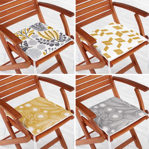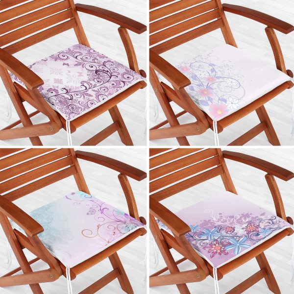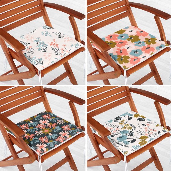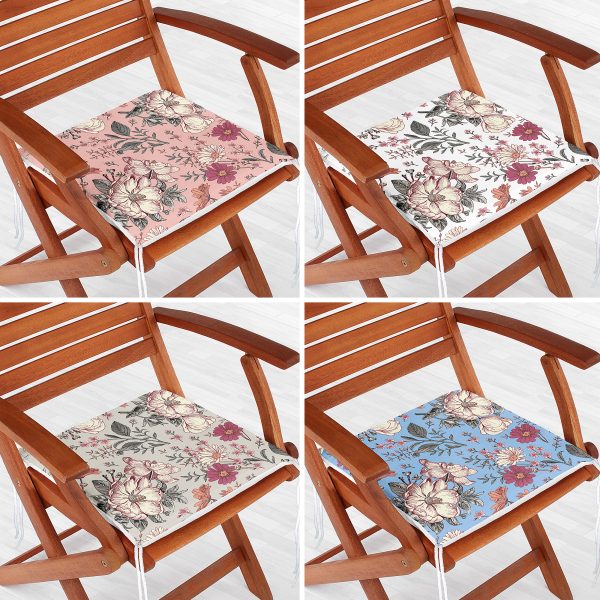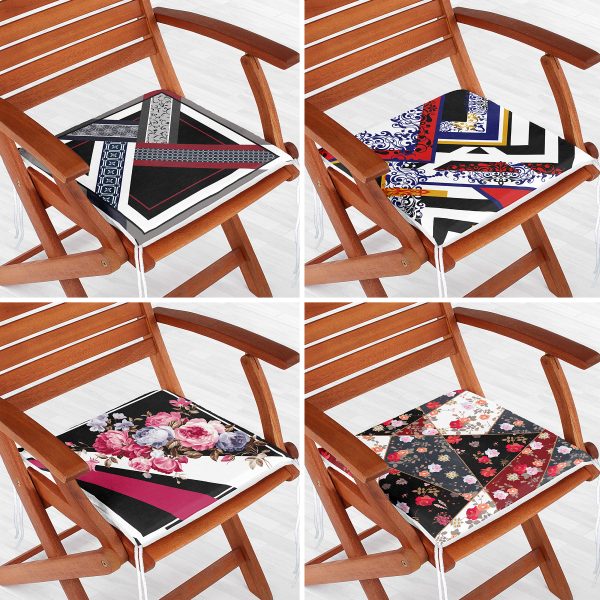 4’lü Geometrik Tasarımlı Çiçek Motifli Fermuarlı Sandalye Minderi Seti