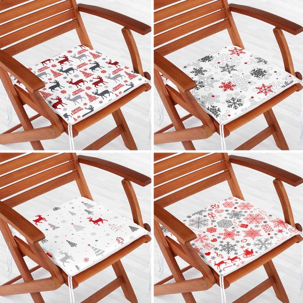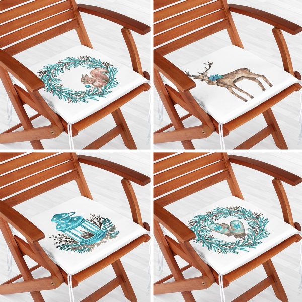 4’lü Beyaz Zeminli Yılbaşı Konseptli Fermuarlı Sandalye Minderi Seti