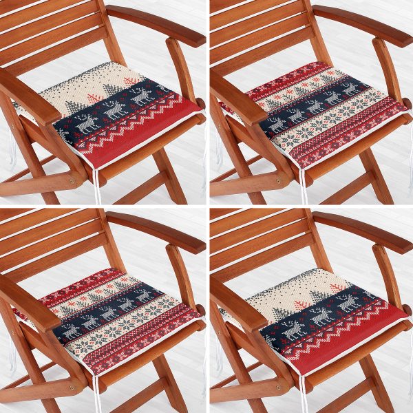 4’lü Geyik Desenli Yılbaşı Temalı Fermuarlı Sandalye Minderi Seti