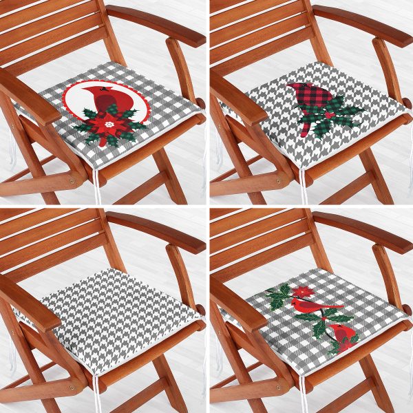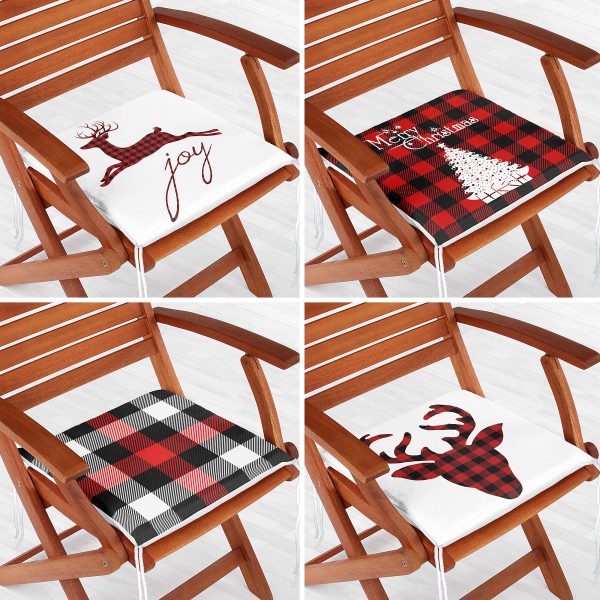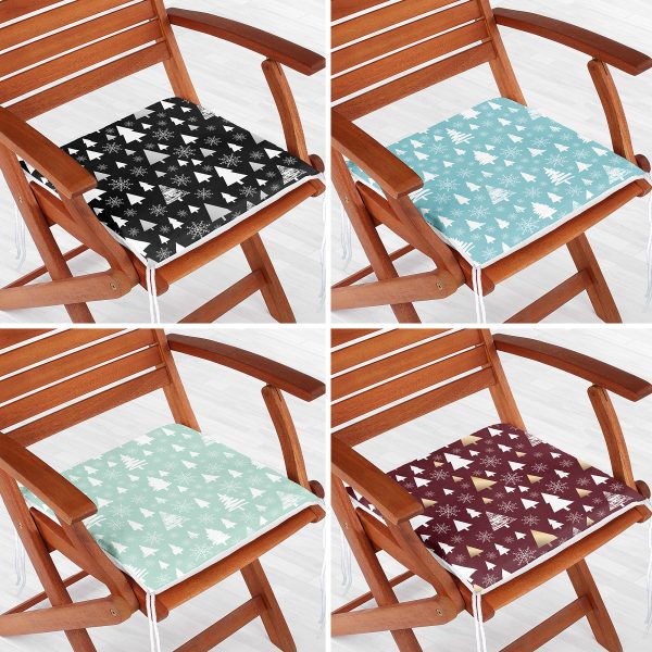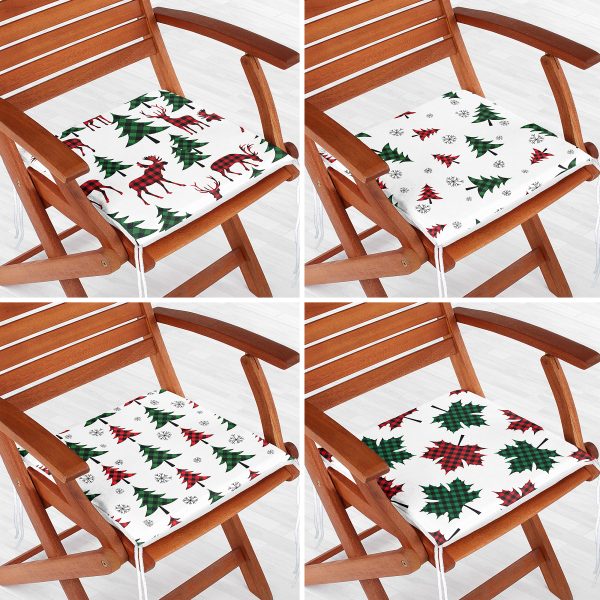 4’lü Ekose Desenli Çam Ağacı Motifli Yılbaşı Konsept Modern Fermuarlı Sandalye Minderi Seti