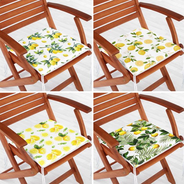 4’lü Limon Temalı Özel Tasarım Fermuarlı Sandalye Minderi Seti