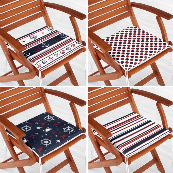 4’lü Beyaz Zemin Üzerinde Renkli Deniz Motifli Modern Fermuarlı Sandalye Minderi Seti