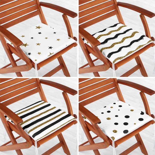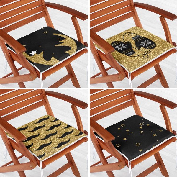 4’lü Yılbaşı Konseptli Altın Varaklı Özel Tasarım Modern Fermuarlı Sandalye Minderi Seti
