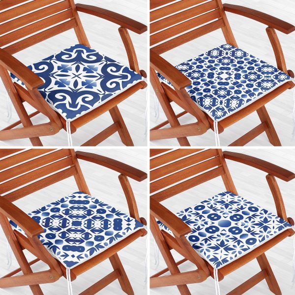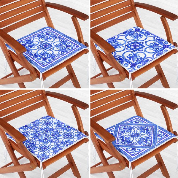 4’lü Beyaz Zemin Üzerinde Çini Desenli Modern Fermuarlı Sandalye Minderi Seti