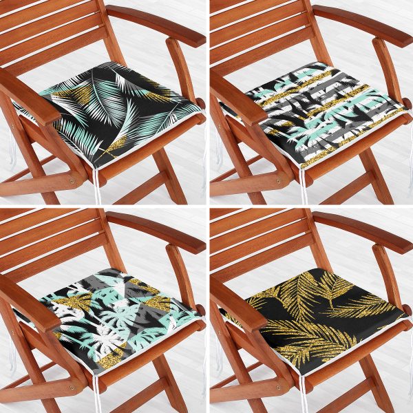 4’lü Gold Tropik Yaprak Motifli Dekoratif Modern Dijital Baskılı Fermuarlı Sandalye Minderi Seti