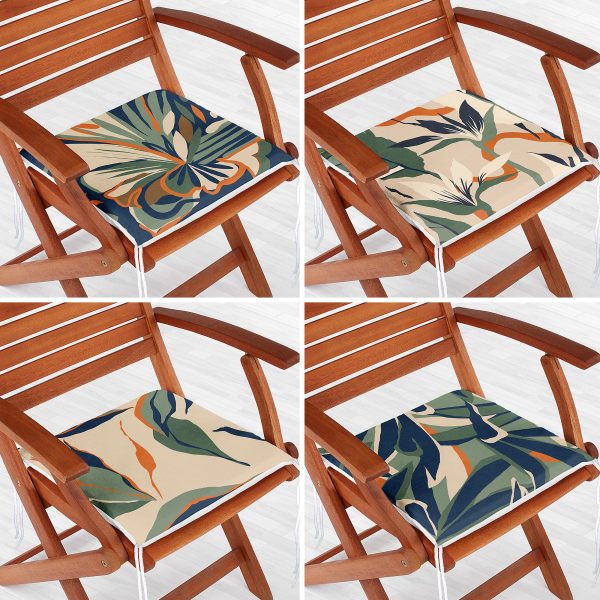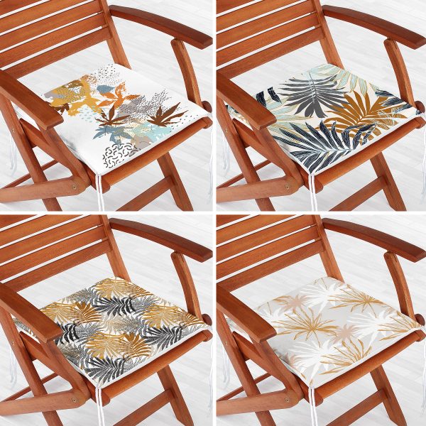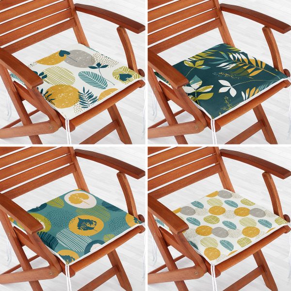 4’lü Renkli Zemin Üzerinde Yaprak Desenli Modern Fermuarlı Sandalye Minderi Seti