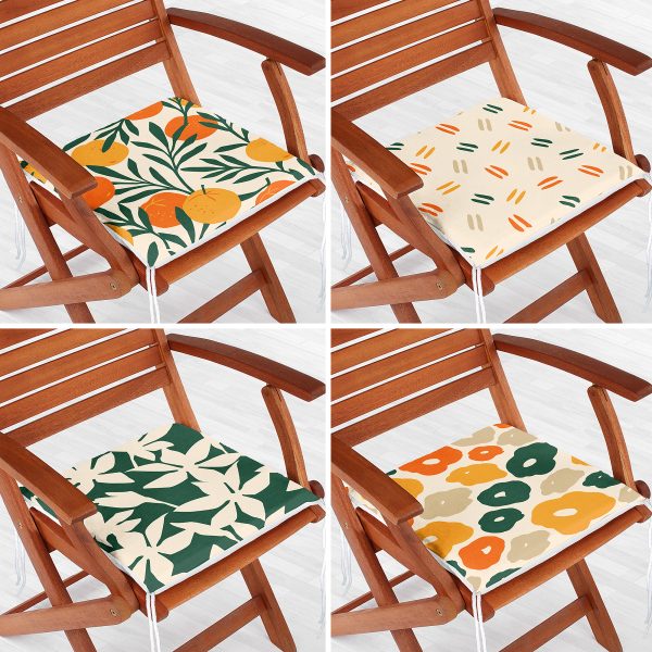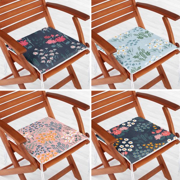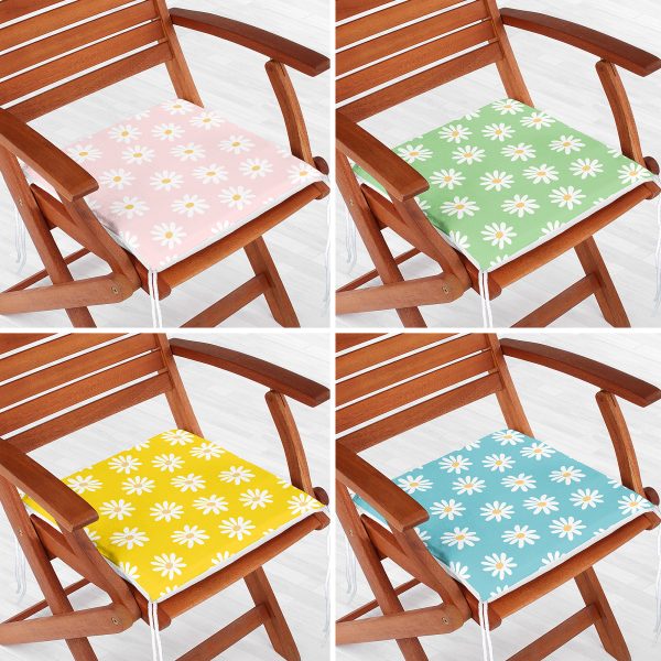 4’lü Renkli Zemin Papatya Tasarımlı Dijital Baskılı Modern Fermuarlı Sandalye Minderi Seti