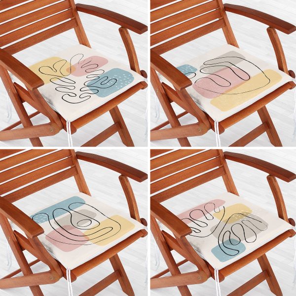 4’lü Renkli Zemin Üzerinde Onedraw Çizimli Modern Fermuarlı Sandalye Minderi Seti
