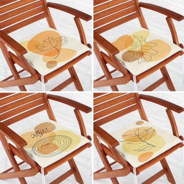 4’lü Beyaz Zemin Üzerinde Sonbahar Yaprağı Desenli Modern Fermuarlı Sandalye Minderi Seti