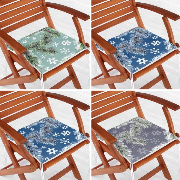 4’lü Özel Tasarım Kış Temalı Dijital Baskılı Modern Fermuarlı Sandalye Minderi Seti