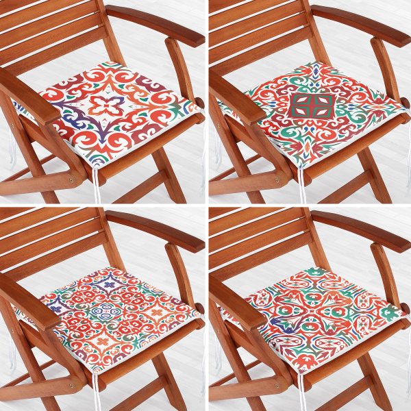 4’lü Renkli Zemin Üzerinde Kartanesi Desenli Modern Fermuarlı Sandalye Minderi Seti