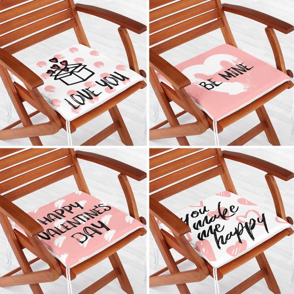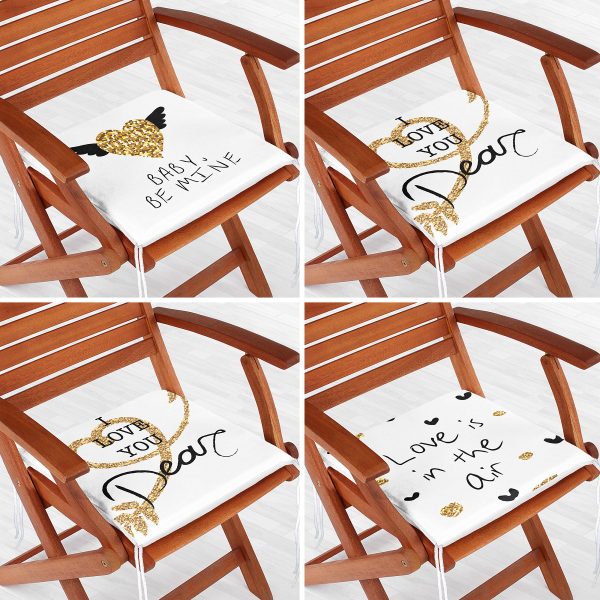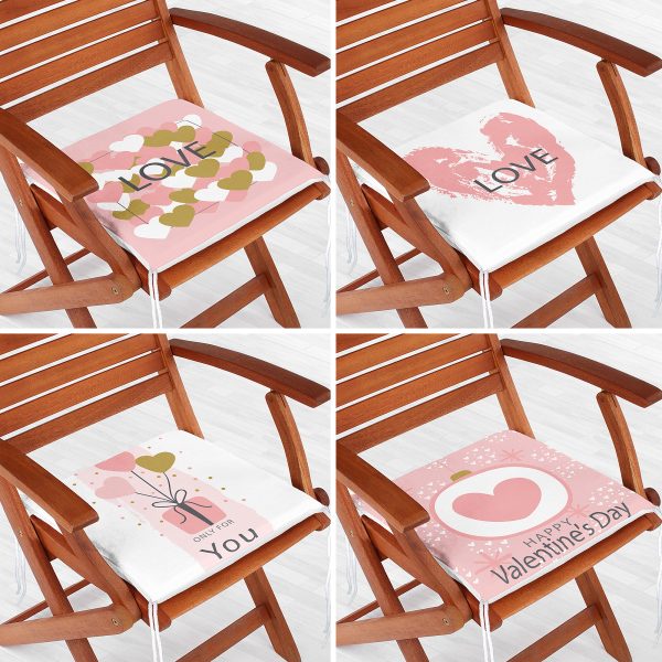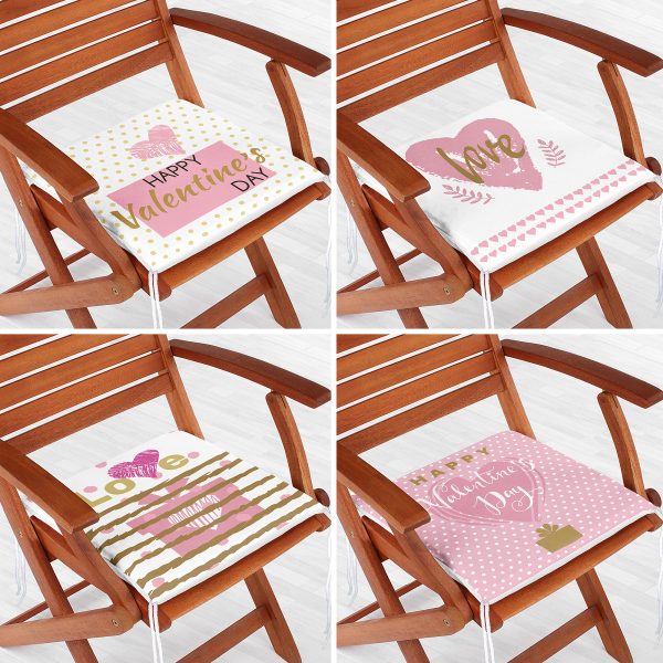4’lü Sevgililer Günü Konseptli Özel Tasarım Modern Kombin Fermuarlı Sandalye Minderi Seti