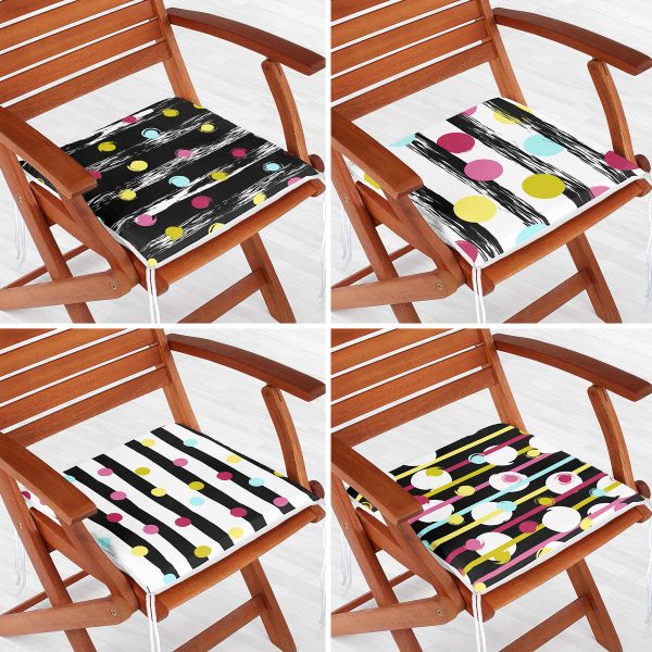 4’lü Renkli Puantiye Motifli Dijital Baskılı Modern Fermuarlı Sandalye Minderi Seti