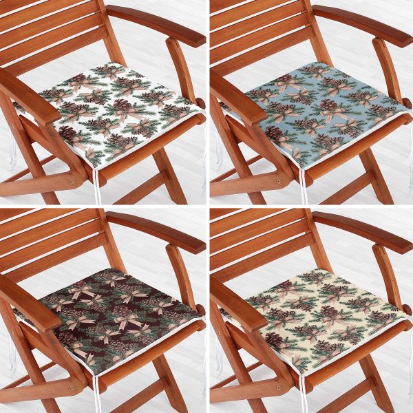 4’lü Pastel Zeminli Kozalak Tasarımlı Dijital Baskılı Modern Fermuarlı Sandalye Minderi Seti
