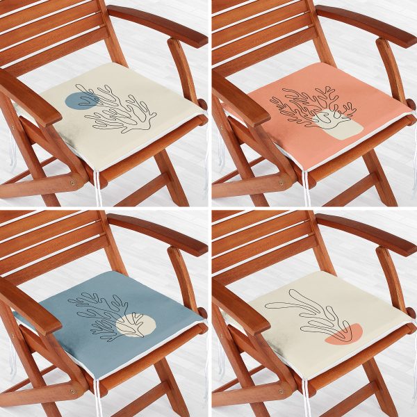 4’lü Renkli Zemin Deniz Yosunu Çizimli Dijital Baskılı Modern Fermuarlı Sandalye Minderi Seti