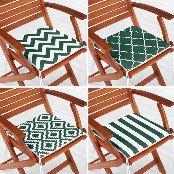 4’lü Koyu Yeşil Geometrik Çizimler Özel Tasarım Dijital Baskılı Modern Fermuarlı Sandalye Minderi Seti