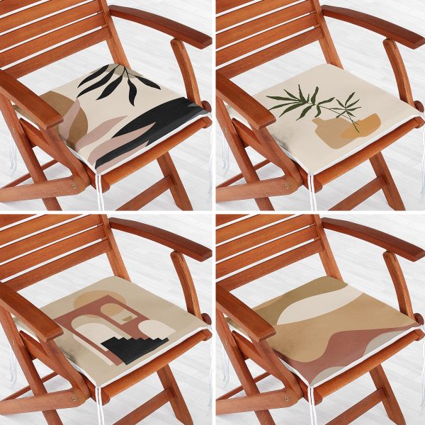 4’lü Renkli Zemin Üzerinde Çamağacı Desenli Modern Fermuarlı Sandalye Minderi Seti