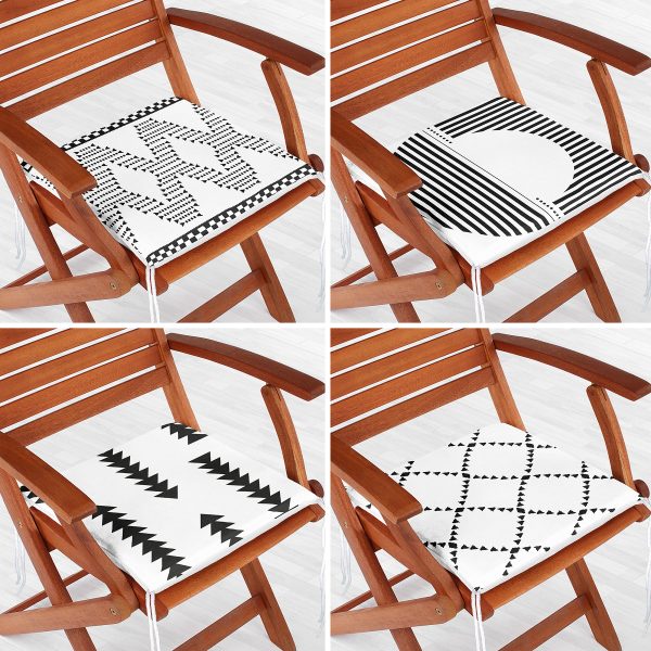 4’lü Siyah Beyaz İskandinav Tasarımlı Fermuarlı Sandalye Minderi Seti