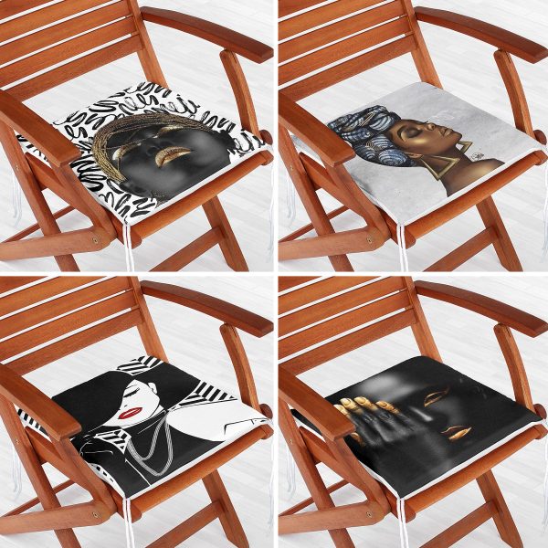4’lü Siyahi Kadınlar Özel Tasarım Dijital Baskılı Fermuarlı Sandalye Minderi Seti