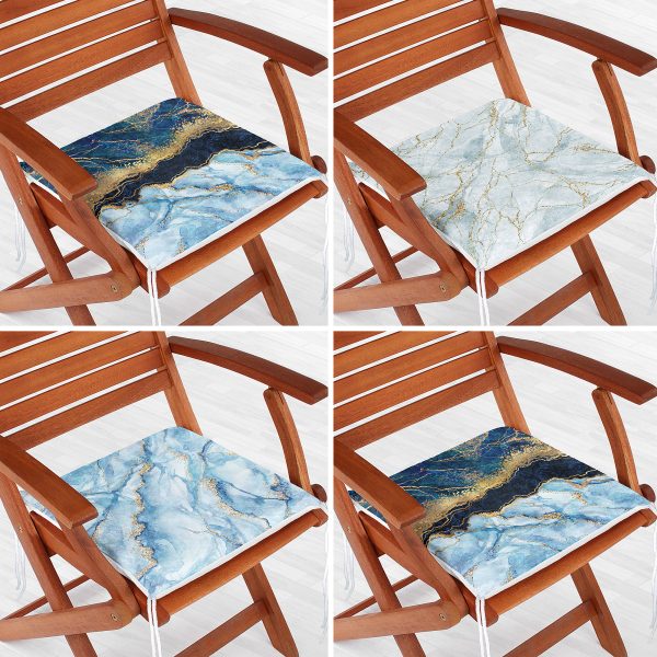 4’lü Mavi Mermer Fermuarlı Sandalye Minderi Seti