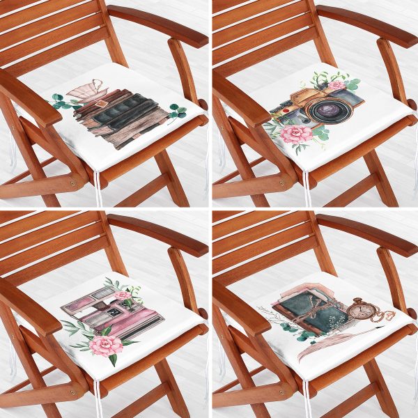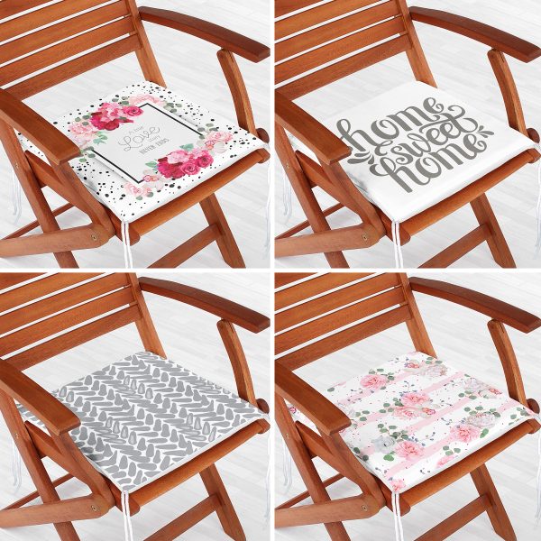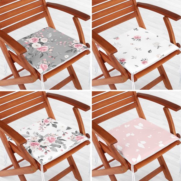 4’lü Gül Motifli Konsept Modern Fermuarlı Sandalye Minderi Seti