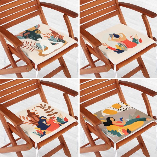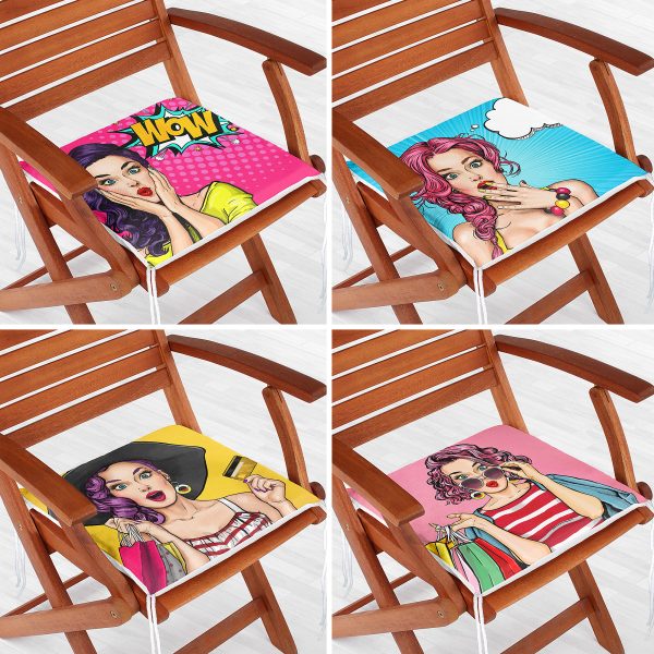 4’lü Fashion Girl Konseptli Fermuarlı Sandalye Minderi Seti